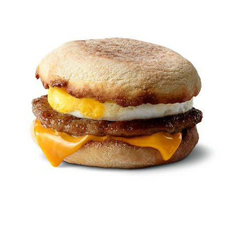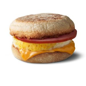 یک عدد تخم مرغ ، بیکن گریل شده ، یک ورق پنیر چدار ، نان گرد اسلایدری