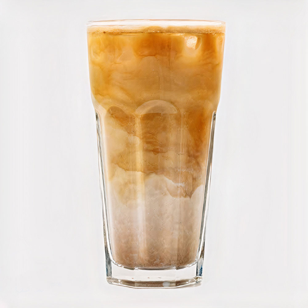 ۴۵۰ میلی لیتر، ۲ شات اسپرسو، ۷۰% قهوه روبوستا و ۳۰% قهوه عربیکا، یخ